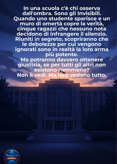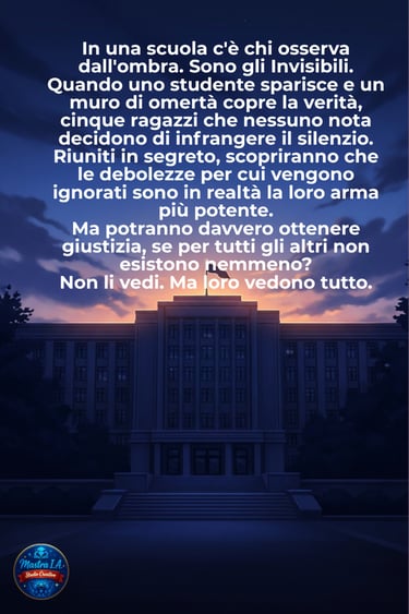 In ogni scuola ci sono ragazzi che sembrano trasparenti. C'è Giorgia, persa nei suoi calcoli e nel suo mondo ordinato. C'è Riccardo, che si nasconde dietro i suoi disegni per sfuggire ai bulli. C'è Fatima, la cui intelligenza viene costantemente ignorata. C'è Luca, il "ragazzo grasso e simpatico" che osserva tutto dai margini. E c'è Elisa, il fantasma silenzioso che nessuno nota mai.